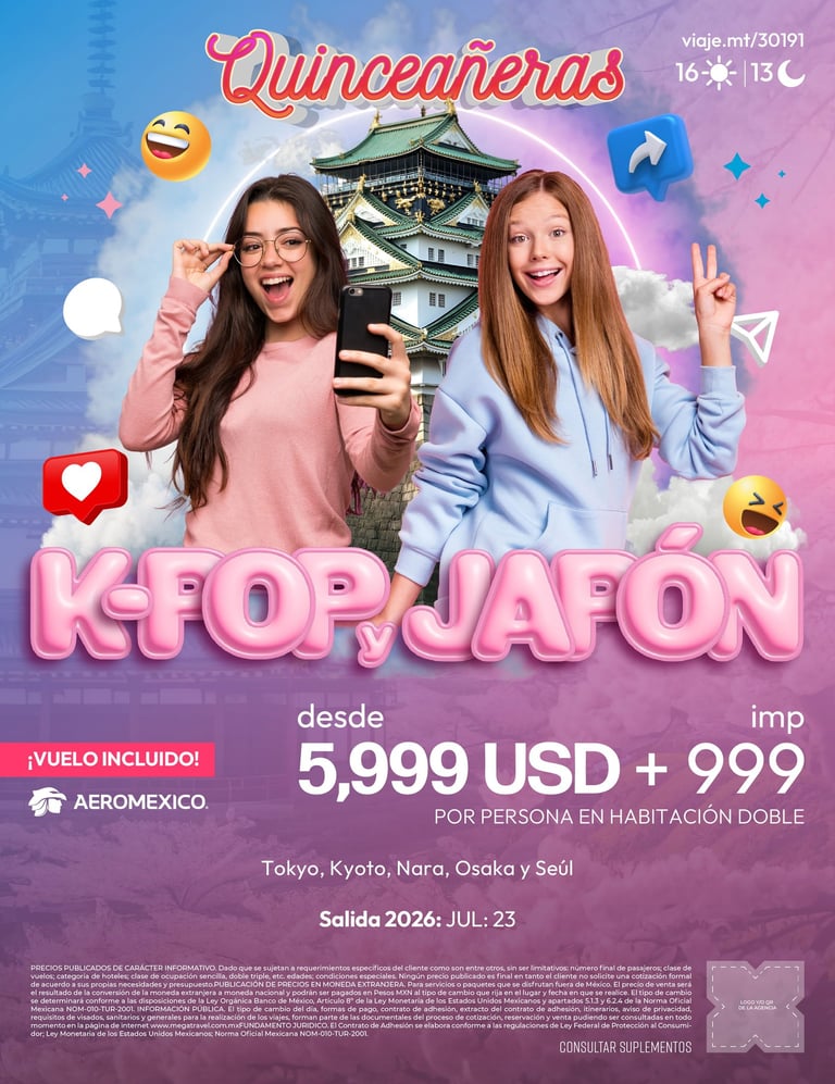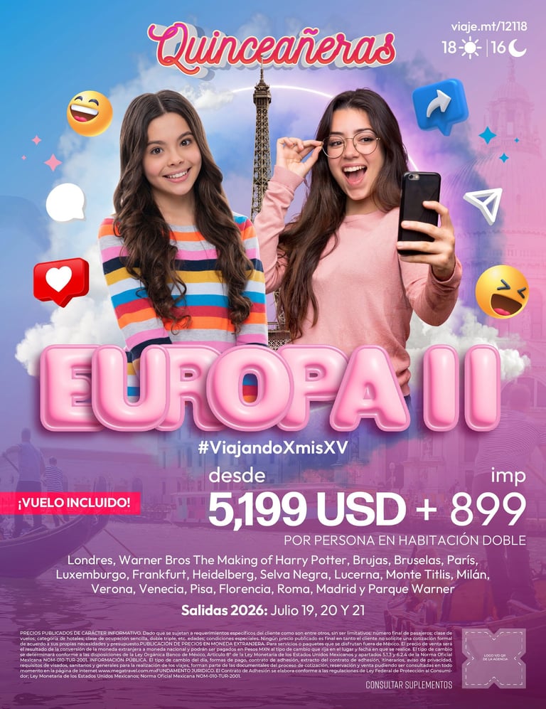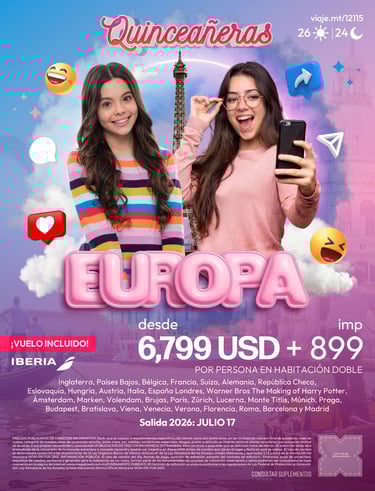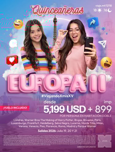 Vive la mejor de las experiencias celebrando tus XV años por el mundo de la mano de los mejores.