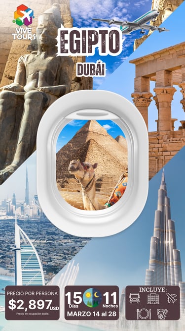 📍Visitando: El Cairo, Aswan, Kom Ombo, Edfu, Esna, Luxor, Dubái