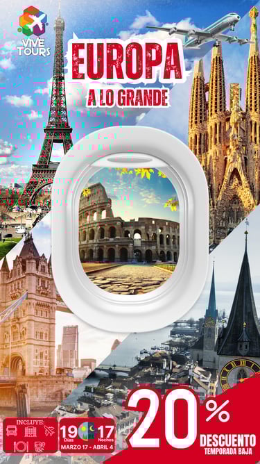 📍Visitando: Londres, París, Luxemburgo, Frankfurt, Heidelberg, Zúrich, Lucerna, Vaduz, Innsbruck, Padua, Venecia, Florencia, Roma, Pisa, Niza, Barcelona, Zaragoza, Madrid